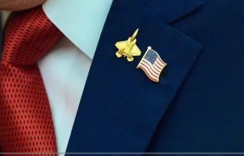 تاہم بعد ازاں وضاحت کی گئی کہ صدر ٹرمپ نے یہ پن ترکیے کے صدر رجب طیب اردوان سے ملاقات کے موقع پر لگائی تھی۔ پن دراصل ایف 22 ریپٹر جنگی طیارے کی سنہری علامت تھی، جو ملاقات سے قبل ہی کوٹ پر نصب کی گئی تھی۔